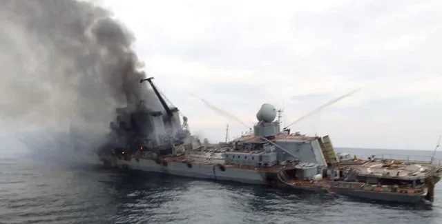 Флагман российского Черноморского флота, крейсер "Москва" был подбит украинскими ракетами "Нептун" 13 апреля 2022 года. 14 апреля СМИ писали, что введенный в эксплуатацию в 1983 году 186-метровый крейсер перестал подавать сигнал SOS около 01:05 по киевскому времени, наклонился на левый борт и утонул.