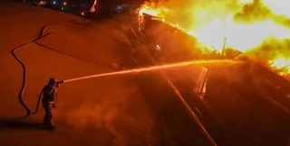 На фото с места событий в Одессе видим здание, охваченное пламенем. Видно, что огонь пылает и внутри сооружения, и на крыше.