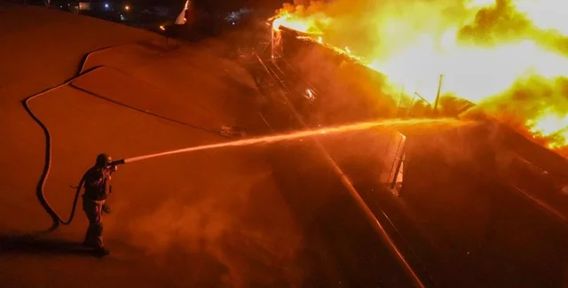 В заметке Одесского городского головы есть несколько фото с последствиями ночного налета дронов РФ. На первом фото — горящее гражданское здание. На втором — вероятно, помещение в больнице: видим больничную койку и медицинское оборудование.