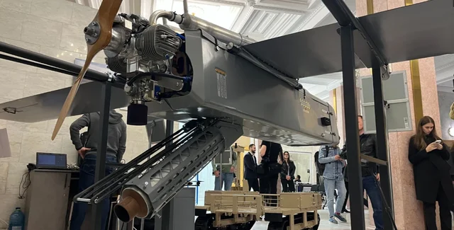 Беспилотник продемонстрировали на мероприятии, посвященном Дню пехоты ВСУ, сообщило Министерство по вопросам стратегических отраслей промышленности Украины.