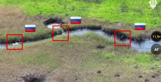 На обнародованных кадрах видно, как группа россиян погрузилась в водоем и движется по воде к украинским позициям. Впрочем, такая вылазка не осталась незамеченной для украинских операторов дронов и они следили за этим "плавучим действом" какое-то время, а потом просто прекратили этот вражеский заплыв сбросами.