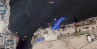 Спутниковые снимки, сделанные 2 июня над верфью в северокорейском городе Чхонджин, подтвердили, что аварийный эсминец класса "Чхве Хен" водоизмещением около 5000 тонн был приведен в вертикальное положение. Корабль достали из воды оригинальным способом.