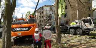 В жилой дом в Шевченковском районе, целый подъезд которого разрушен, попала российская ракета. Министр внутренних дел Игорь Клименко рассказал, что она перелетела более высокий дом поблизости перед ударом.