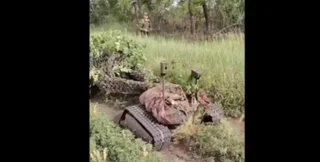 Ведущие канала СПЖ "Водограй" обратили внимание, что огневая система передвигалась при помощи гусеничной роботизированной платформы "Варан", что стало достаточно прагматичным решением.