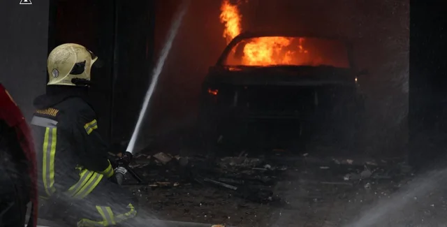 Луцк подвергся самой массированной воздушной атаке за время полномасштабной войны с Россией. Пожарные тушат возгорания на складах одного из предприятий.