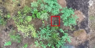 Кадры демонстрируют, как женщина в военной форме ВС РФ пытается убежать через посадку от украинского дрона.