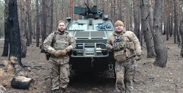 Украинский бронетранспортер Oncilla и бойцы бригады "Хартия" | Фото: Скрин видео