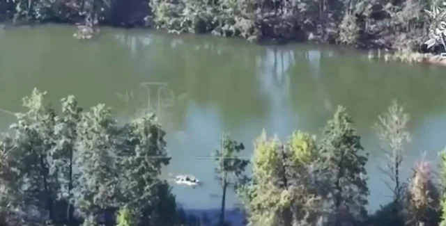 Подразделение Вооруженных сил Российской Федерации пыталось форсировать реку на Сумщине. Как только россияне подобрались к берегу, к ним прилетел ударный дрон и взорвал лодку вместе с вражескими десантниками.