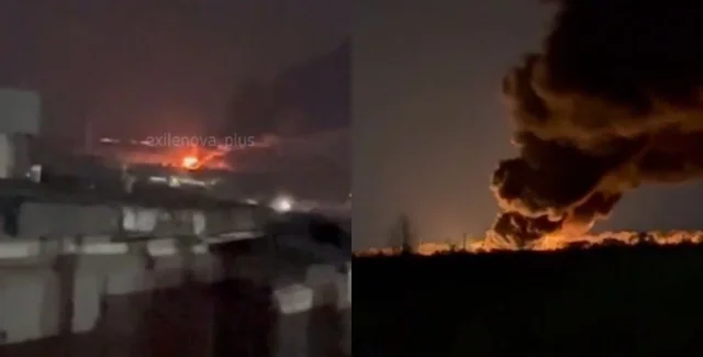 По словам россиян, из-за атаки дрона произошло возгорание резервуара с горюче-смазочными материалами. Однако резервуары "не были полностью заполнены", из-за чего площадь возгорания якобы "минимальная", уверяют россияне.