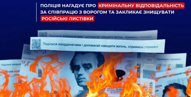 Полиция также предупреждает об уголовной ответственности за сотрудничество с оккупантами, в частности по распространению информации о расположении позиций и движении ВСУ, и призывает уничтожать вражескую пропаганду.