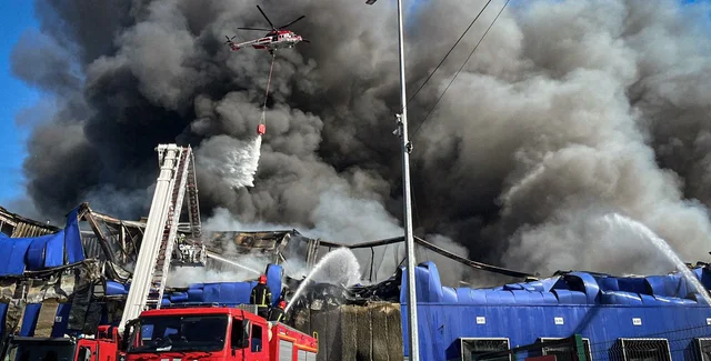 Во время атаки российских БПЛА 16 сентября в Киевской области пострадал логистический центр "Эпицентра". В результате удара вспыхнул масштабный пожар, жителей района призывают не открывать окна.