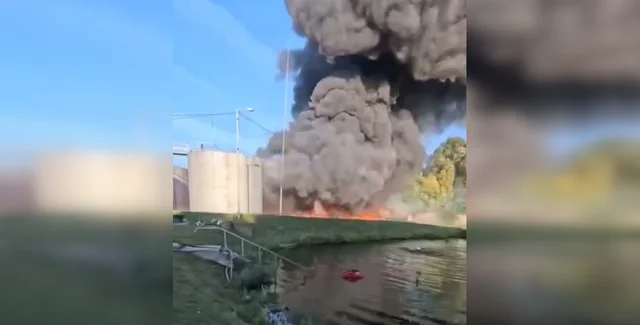 Реактивные российские дроны "Герань-3" ударили по одной из украинских нефтебаз. В сети появилось видео прилета рядом со спасателями Государственной службы Украины по чрезвычайным ситуациям (ГСЧС), которые тушили пожар.