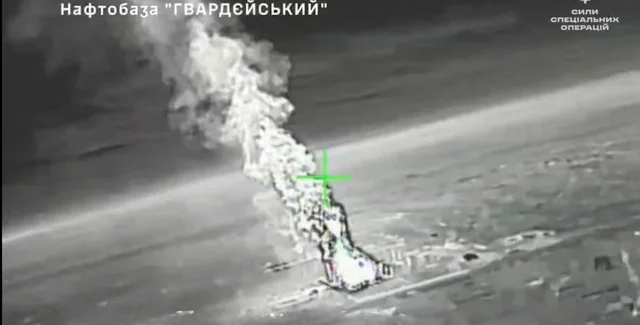 ССО показали момент поражения дронами нефтебазы в Крыму | Фото: Скрин видео