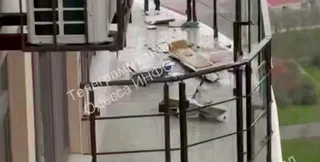 Обломки вражеского дрона на балконе квартиры в Одессе | Фото: Скрин видео