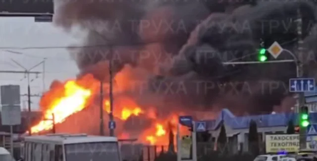 Также местные паблики сообщают, что в результате атаки в городе сгорел автосалон Renault.