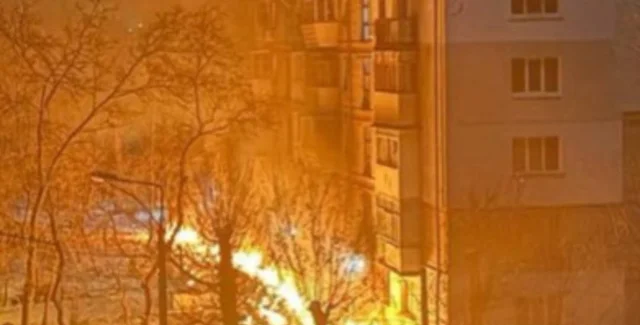 В сети также появилось видео пожара в жилом доме, куда попали россияне.