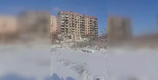 Люди еще живут в одном из наименее разрушенных домов. Местная жительница в видео рассказала, что в многоэтажке остаются 20 жителей.