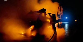 На трассе Павлоград-Покровск ВС РФ поразили беспилотниками четыре автомобиля, причем ближайший из них горит уже за семь километров от Павлограда, пишет журналистка Юлия Кириенко-Меринова, публикуя видео пылающих машин, присланное военными.