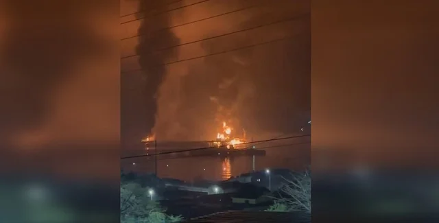 "Поражена нефтеналивная инфраструктура нефтяного терминала "Шесхарис" (Новороссийск, Краснодарский край, РФ). Зафиксированы попадания по цели и масштабный пожар на территории терминала", — сообщили в Генштабе и отметили, что масштабы нанесенного ущерба уточняются.