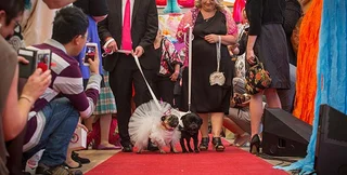 Собачья свадьба прошла по всем правилам: на торжественной церемонии Джаспер и Джастин появились в дизайнерских костюмах, сшитых на заказ за 2 тысячи долларов, а "молодоженам" и гостям вечера был подан настоящий свадебный торт с фигурками жениха и невесты.