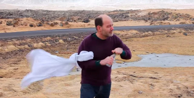 Американский турист Марк Треттер попал в Исландии под сильный ветер и решил показать, что будет, если попытаться в такую погоду выпить воды из бутылки, передает Meduza.io.