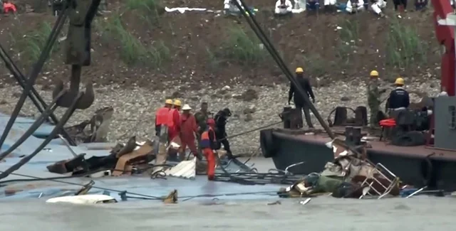 Лайнер затонул 1 июня на реке Янцзы. Он перевернулся из-за торнадо, который обрушился во время шторма. На борту были 456 человек, большинство - пожилые люди. Капитан судна оказался среди первых спасенных, его арестовали и допрашивают. 5 июня инженерам с помощью двух кранов перевернули судно, которое весит более двух тысяч тонн.