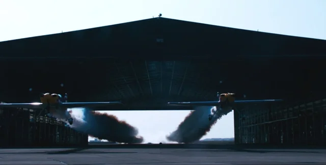 Британские пилоты Пол Боном и Стив Джонс выполнили сложнейший трюк — они параллельно пролетели на самолетах сквозь ангар на минимальной высоте. Их скорость составляла около 300 километров час.