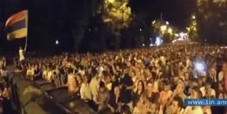 Ереванская полиция призвала демонстрантов убрать урны с площади. "Вы должны вынести урны, поскольку ставить их здесь запрещено законом", - сказал замначальника полиции полковник Валерий Осипян в громкоговоритель.