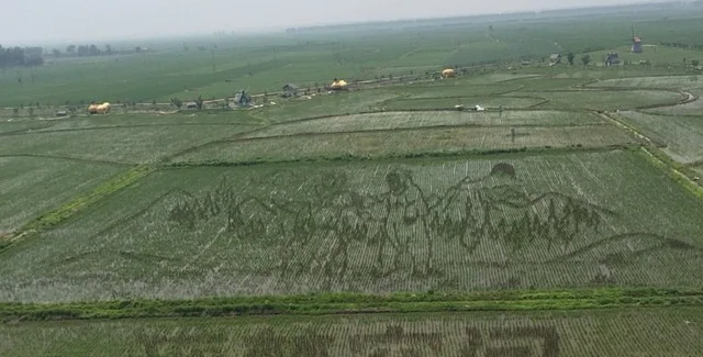 22 июня в китайском поселке народности Сибо в Синлунтай в районе Шэнбэй Шэньяна (провинция Ляонин) было представлено 3D-полотно рисового поля общей площадью в 10 га из 13 отдельных картин, сообщает "Жэньминь жибао".