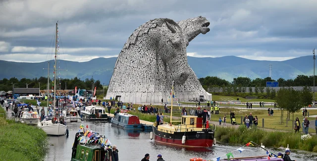 Скульптуры высотой 30 метров и весом 300 тонн установлены над каналом Форт-Клайд. Композиция получила название "Келпи" в честь водяных духов из шотландской мифологии.
