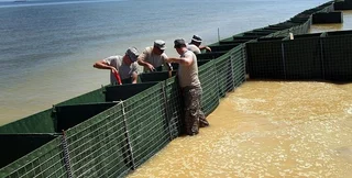 Мобильные заграждения Нesco состоят из сборных квадратных оцинкованных блоков, фиксирущихся между собой в виде больших "ящиков", которые потом засыпают землей, песком и щебнем. Преимущество этих конструкций состоит в низкой себестоимости и возможности оперативного развертывания.