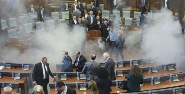 Канистру со слезоточивым газом принес на заседание косовского парламента Доника Када Буджупи, депутат от "Альянса за будущее Косово". Он вскрыл емкость, когда спикер парламента открывал заседание. Прежде, чем выпустить газ, депутаты от оппозиции блокировали трибуну.