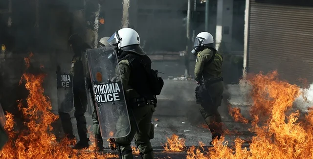 По данным The Telegraph, в Афинах мирная забастовка переросла в столкновения с полицией после того, как 25-тысячный марш прошел по городу. Полиция применила слезоточивый газ и светошумовые гранаты для разгона протестующих против мер экономии, которые бросали бутылки с зажигательной смесью.