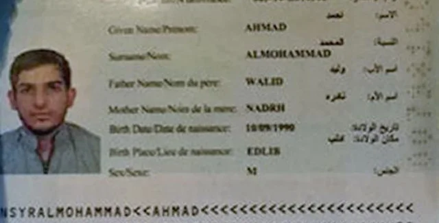 Сирийский паспорт на имя Альмохаммада Ахмада ранее был обнаружен у смертника, совершившего теракт возле стадиона Стад де Франс