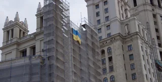 Несколько активистов движения "Единство равных" вывесили флаги Украины на строительных лесах вокруг здания высотки на Котельнической набережной в Москве, передает "РБК" со ссылкой на "ОВД-Инфо".