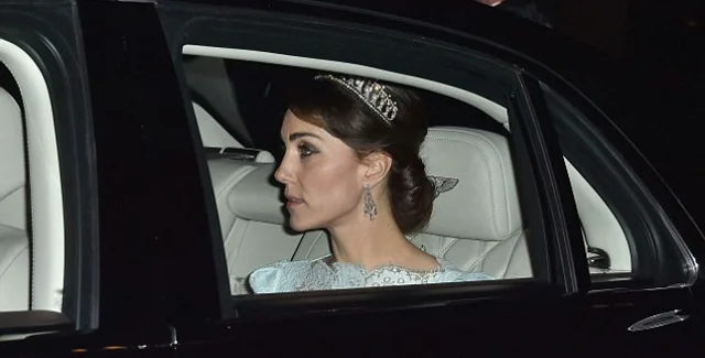 Тиару "Узелки любви", украшенную жемчугом и 19 бриллиантовыми арками, Миддлтон надела на встречу принца Уильяма и 160 послов