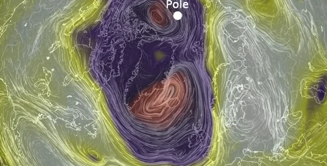 В среду утром температура на огромной территории вокруг Северного полюса варьировалась между 30 и 35 градусов по Фаренгейту (-1,1 - +1,6 по Цельсию). На широте 87,45 градуса северной широты - 0,7 градуса тепла. Метеорологи отмечают, что 30 декабря на Северном полюсе было так же тепло, как в Чикаго.