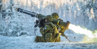 Пехотинцы вооруженных сил Эстонии на полигоне тренируются в стрельбе из модернизированных ручных противотанковых ракетных комплексов FGM-148 Javelin.