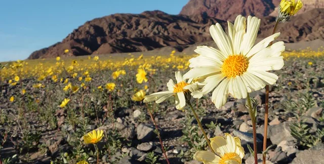 На странице национального парка "Долина Смерти" сказано, сейчас среди местных скал и песков можно увидеть различные виды Фацелий (Phacelia), Астровых (Asteraceae), Кипрейных (Onagraceae) и других цветов, способных выживать в столь необычных условиях.