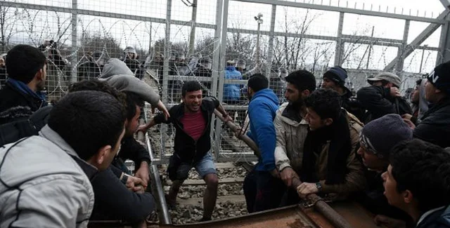 На границе Греции и Македонии беженцы прорвали заграждения самодельным тараном