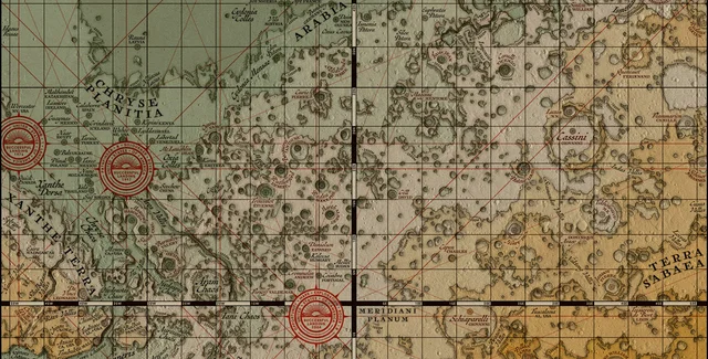 Основа карты нарисована вручную, а сверху дизайнер наложила реальную топографическую съемку NASA. Таким образом, отмечает Лутц, если некоторые линии и отсутствуют на карте, все равно будет виден реальный марсианский рельеф.