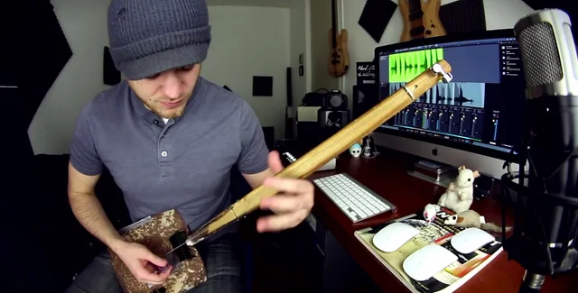 Ранее на этой же однострунной гитаре без ладов, сделанной из совковой лопаты, музыкант исполнил композицию собственного сочинения Shovel Metal.