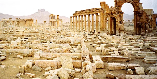 Античный город Пальмира - памятник Всемирного наследия ЮНЕСКО - оказался под контролем террористов группировки "Исламское государство" в мае 2015 года. Перед тем как оставить город, была эвакуирована большая часть его жителей и наиболее ценные исторические реликвии центрального музея Пальмиры. Однако часть культурного наследия была уничтожена боевиками.