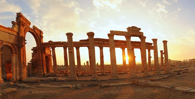 Античный город Пальмира - памятник Всемирного наследия ЮНЕСКО - оказался под контролем террористов группировки "Исламское государство" в мае 2015 года. Перед тем как оставить город, была эвакуирована большая часть его жителей и наиболее ценные исторические реликвии центрального музея Пальмиры. Однако часть культурного наследия была уничтожена боевиками.