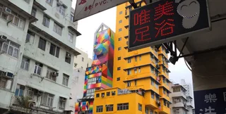 Испанский уличный художник Окуда Сан Мигель, известный по красочным росписям церквей по всему миру, представил новую работу в Гонконге, сообщает Bird In Flight.