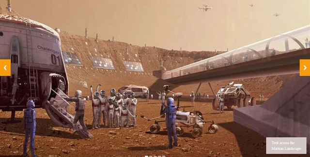 Здесь гости смогут погрузиться в жизнь будущей марсианской колонии, которая будет именно такой, какой мы ее себе представляем, включая уникальные "народные" костюмы, музыку и кулинарию пионеров-"марсиан". Посетителям также предложат совершить "выходы на поверхность" в скафандрах, проехаться на трамвайчике вокруг кратера, на дне которого возведен марсианский городок, и даже провести ночь в одном из местных отелей.
