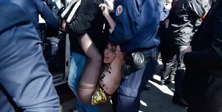 Как отмечает агентство, это уже не первая акция Femen на первомайских митингах "Народного фронта". В прошлом году активистки Femen прервали выступление Марин Ле Пен на митинге в Париже, вывесив на соседнем здании два флага, выполненных в стилистике Третьего рейха, на которых был изображен герб "Национального фронта".