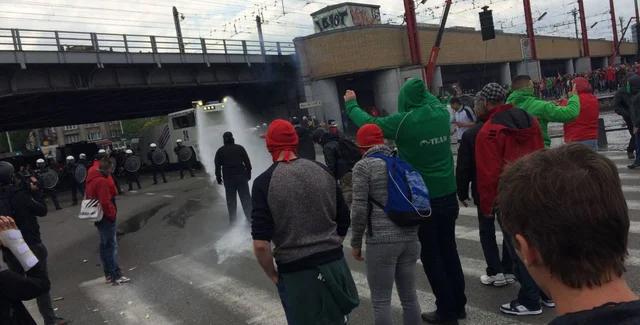Столкновения с полицией произошли в районе Южного вокзала Брюсселя, который был конечной точкой маршрута. По информации издания, демонстранты в масках начали забрасывать полицию камнями и бутылками. В ответ полиция применила водометы и перечный газ.