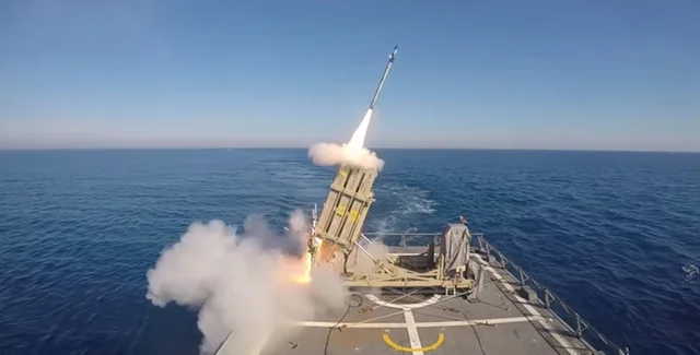 На видеозаписи виден старт ракеты-перехватчика Tamir, ее полет к цели и поражение ракеты-мишени, запущенной с побережья.