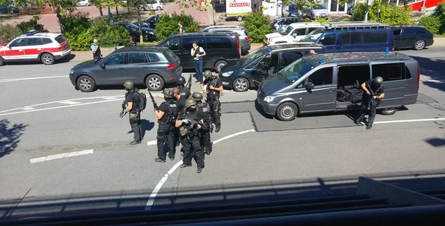 Как уточняет газета FAZ, несколько человек ранены, стрелявший забаррикадировался в здании кинотеатра. Поступала информация, что он захватил заложников.